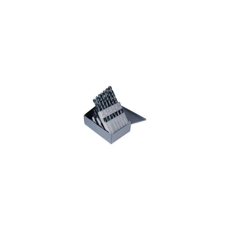Juego de Brocas 29pz.Caja metálica.Medidas: 1/16", 5/64", 3/32", 7/64", 1/8", 9/64", 5/32", 11/64", 3/16", 13/64", 7/32", 15/64", 1/4", 17/64", 9/32", 19/64", 5/16", 21/64", 11/32", 23/64", 3/8", 25/64", 13/32", 27/64", 7/16", 29/64", 15/32", 31/64",1/2". Material Acero Alta Velocidad.Acabado: Óxido negro.Modelo: 400000Marca: Económica.